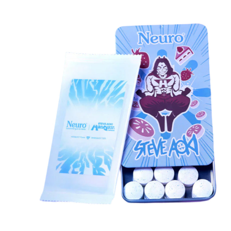 This limited-edition Steve Aoki collaboration brings together Neuro’s fast-acting nootropic formula with a sweet strawberry cake flavour – delivering clean energy and sharp focus in a refreshing mint. Perfect for work, workouts, or anytime you need a cognitive boost without sugar or crashes.