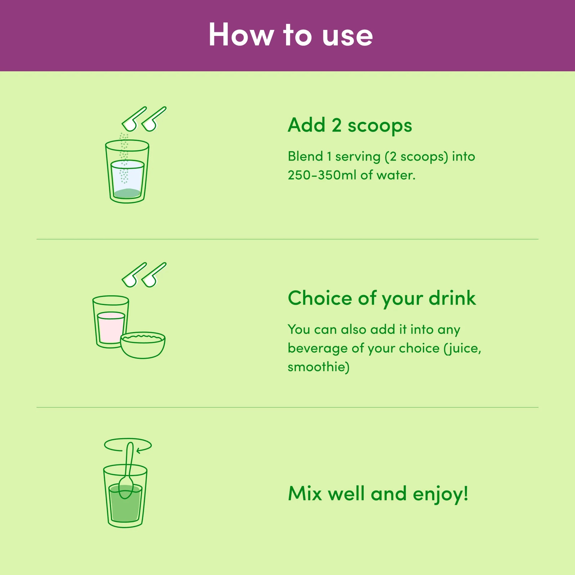 Support Digestion & Gut Health – Probiotics and fibre-rich greens nurture a healthy microbiome.